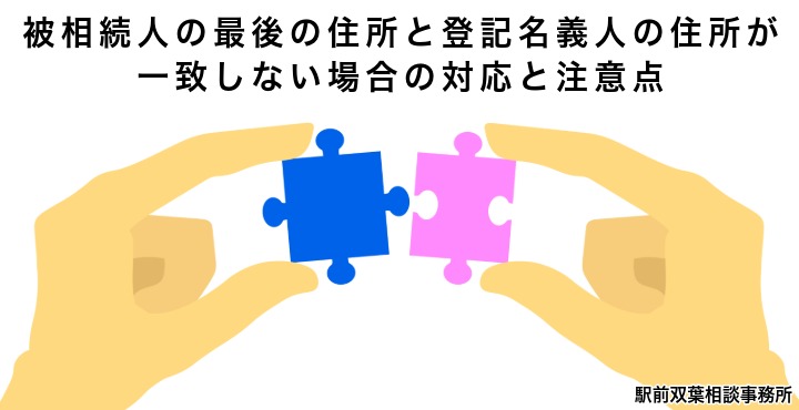 不動産の相続登記において、被相続人と登記簿上の登記名義人の住所が一致しないというケースは、決して珍しくありません。特に不動産を取得した時期から何十年も経過している場合、登記簿の住所から移転したことが、戸籍の附票や住民票だけではつながりを確認できず同一人物であることを説明できないことがあります。登記名義人の住所は次の公的書類によって確認します。